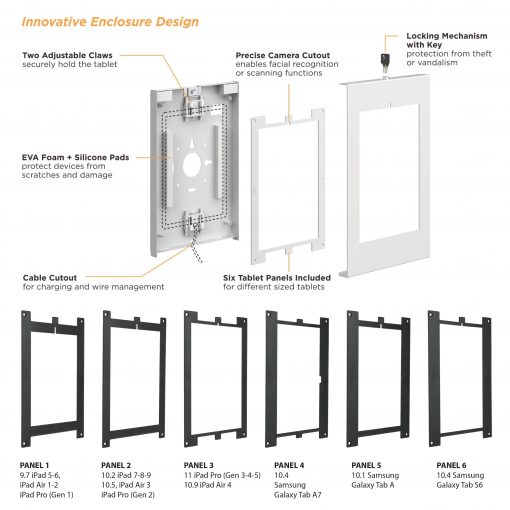 9.7” iPad 5-6, iPad Air 1-2 iPad Pro (Gen 1) — 10.2” iPad 7-8-9 10.5, iPad Air 3 iPad Pro (Gen 2) — 11” iPad Pro (Gen 3-4-5) 10.9 iPad Air 4 — 10.4” Samsung Galaxy Tab A7 — 10.1” Samsung Galaxy Tab A — 10.4” Samsung Galaxy Tab S6